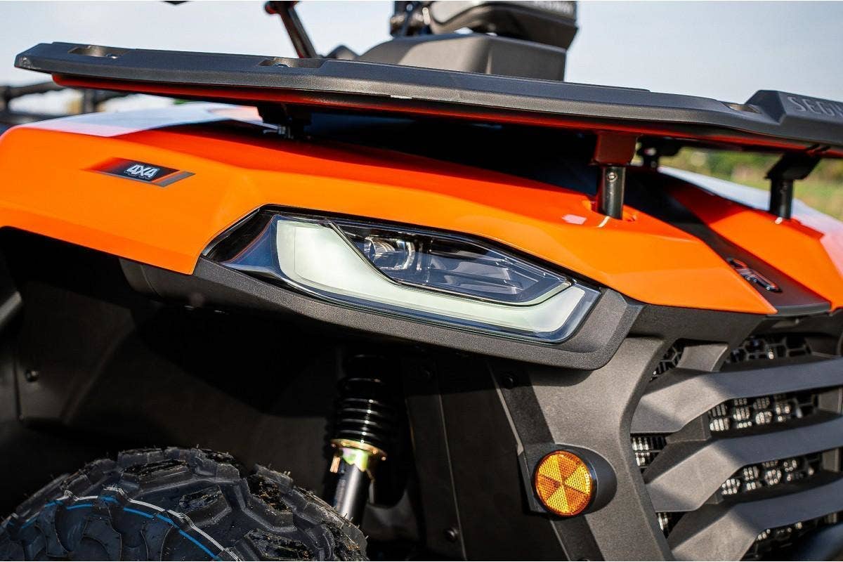 Elektrický posilovač řízení s variabilním účinkem, elektrický naviják, sedadlo spolujezdce s opěrkou zad, homologované tažné zařízení, kompozitní nosiče vpředu i vzadu, uzávěrka předního diferenciálu, digitální multifunkční displej, Full-LED osvětlení, přední ochranný rám, 12" hliníkové disky, 25" pneumatiky, hydraulické tlumiče s progresivními pružinami, nastavitelné předpětí pružin, ochranné kryty rukojetí, zpětná zrcátka