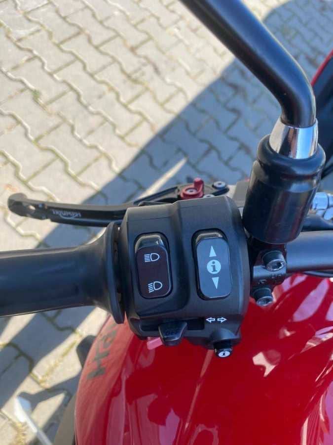 Motocykl je vybaven vyhřívanými gripy a homologovaným výfukem SC Project.