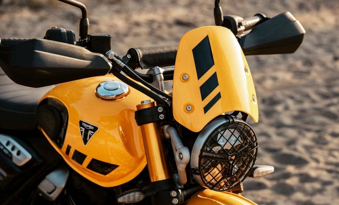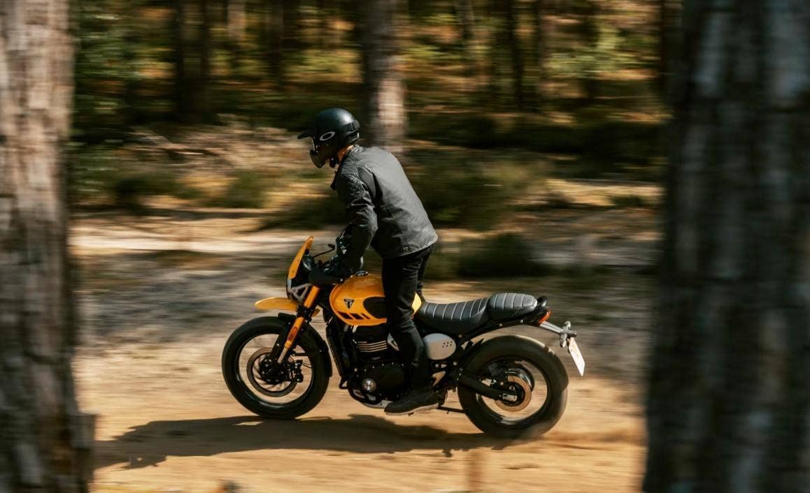 Nová verze oblíbeného Triumph Scramblera 400 nyní ve verzi XC na vyplétaných kolech s bezdušovými pneu Metzeler Karoo Street!