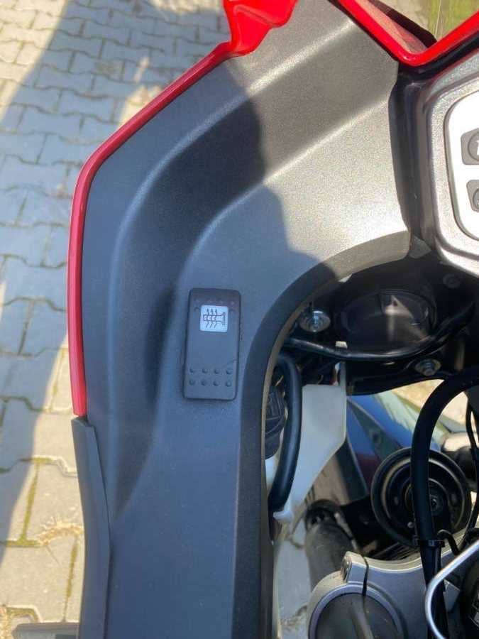 Motocykl je vybaven vyhřívanými gripy a homologovaným výfukem SC Project.